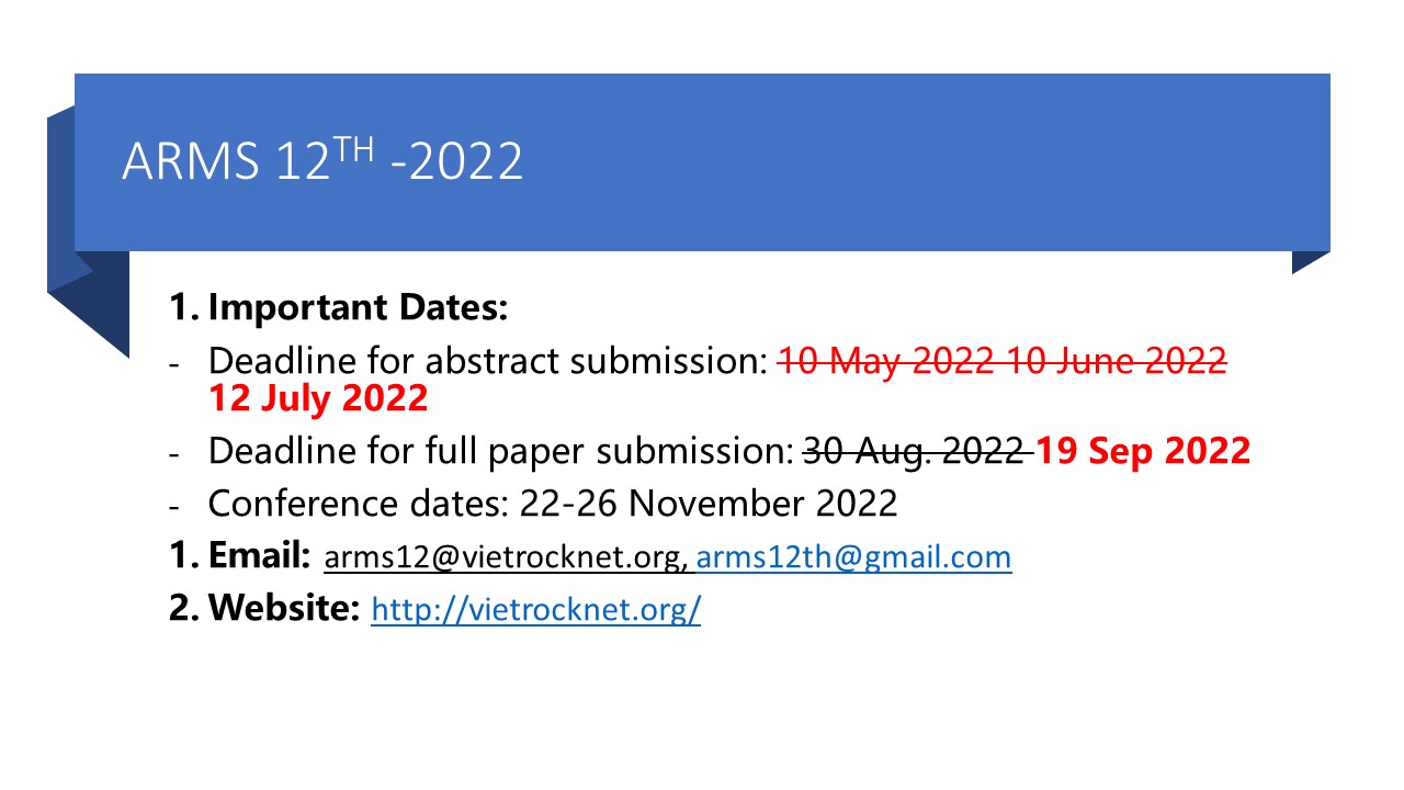 ARMS12, Hanoi, Vietnam: Deadline for Full paper Submission extended to 19 Sep 2022
